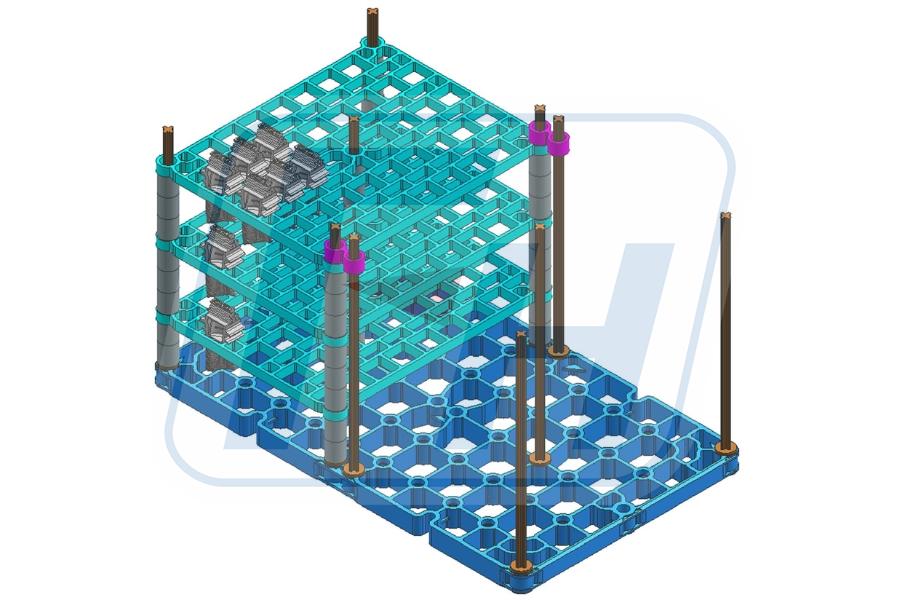 Our optimized design increased the blade load capacity from 60 to 240 pieces, significantly improving both heat treatment and cooling efficiency.